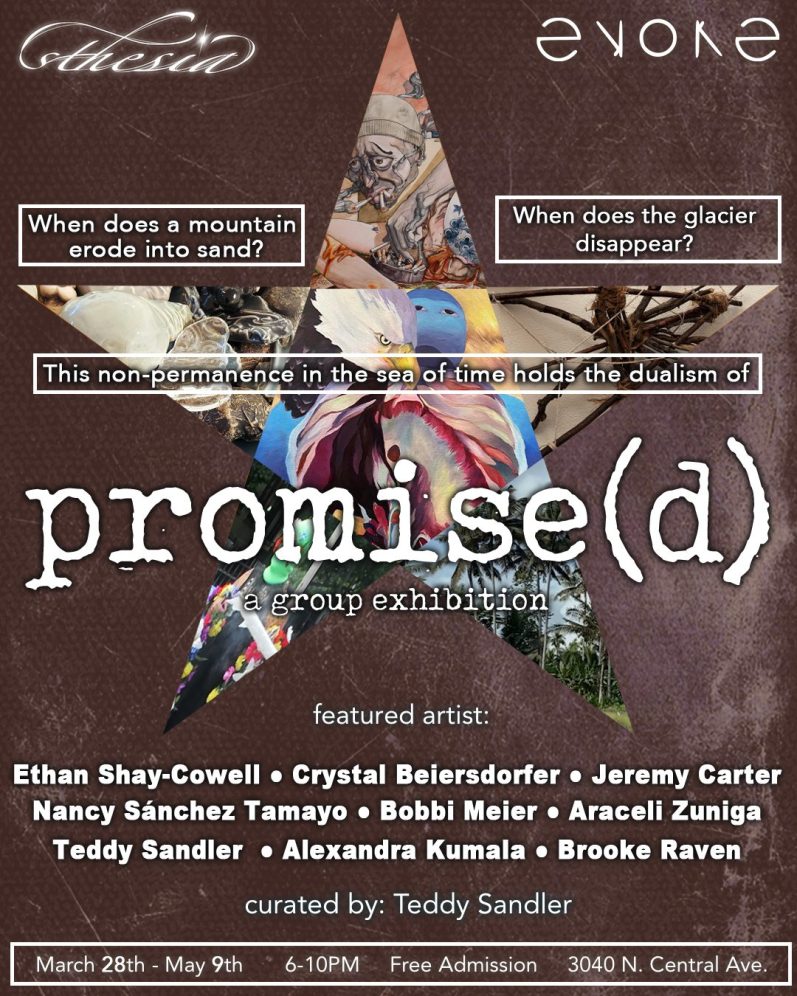 Evoke Gallery welcomes Teddy Sandler (STHESIA) as our first guest Curator. Taking on the opportunity to transform from our walls, Teddy proudly brings to you, “Promise(d)”.
