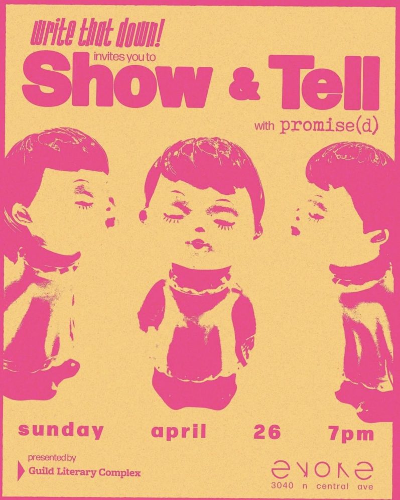 Write that Down is back with a special edition of their Show & Tell series in tandem with Promise(d), the first exhibition curated by Teddy Sandler (@sandler.tdy) at Evoke Gallery (@evokegallerychicago). This group show explores destiny and manifests a collective dream through visualizations of growth in times of decay.